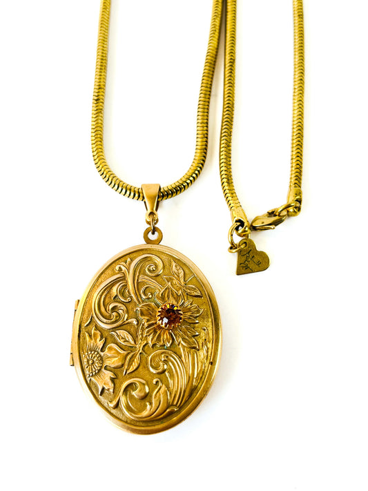 Collar Relicario Dorado Antiguo de Miriam Haskell - Pieza de Colección