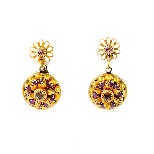 Aros Colgantes Violeta en Flor - Aros Florales con Cristales de Swarovski