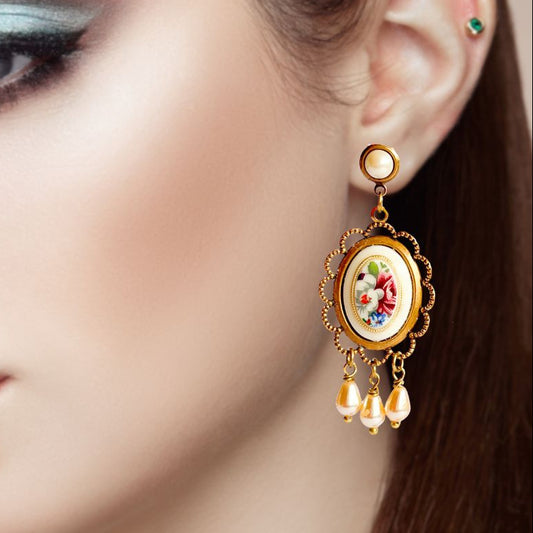 Pendientes Camafeo Floral Vintage con Perlas | Aros Románticos Hechos a Mano