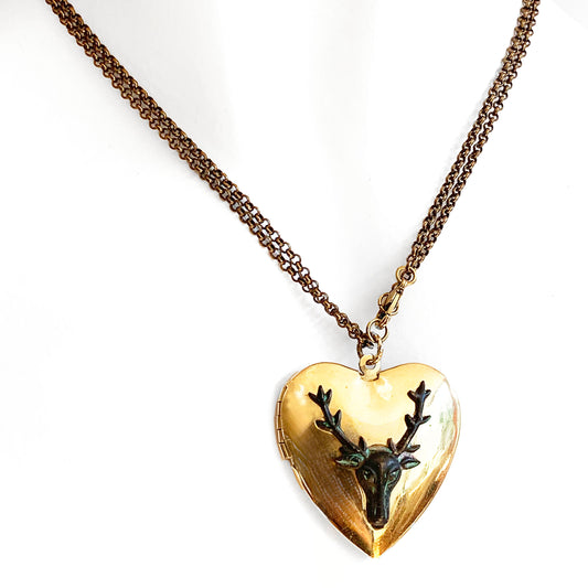 Collar Relicario Romántico Ciervo de la Naturaleza
