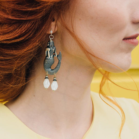 Aros Sirena Plateada | Joyería Marina Elegante y Vintage