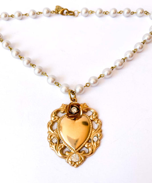 Collar Pasionaria - Colgante de Perlas y Corazón Barroco