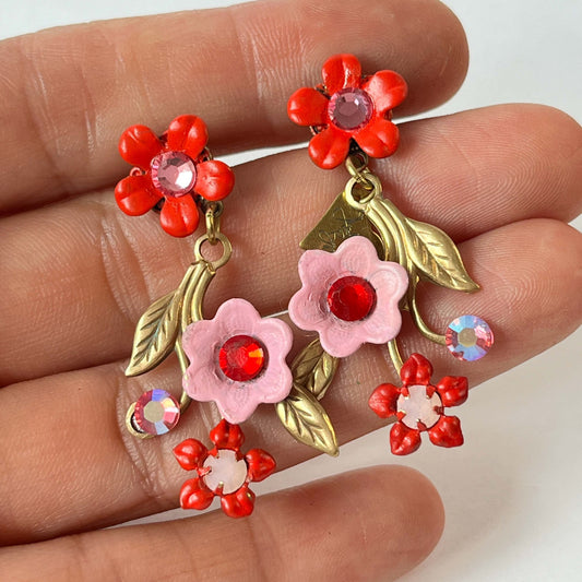 Pendientes Flores Rojas Esmaltadas y Circones