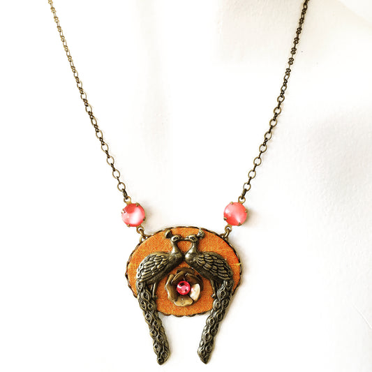 Collar Pareja de Pavo Real y Rosa