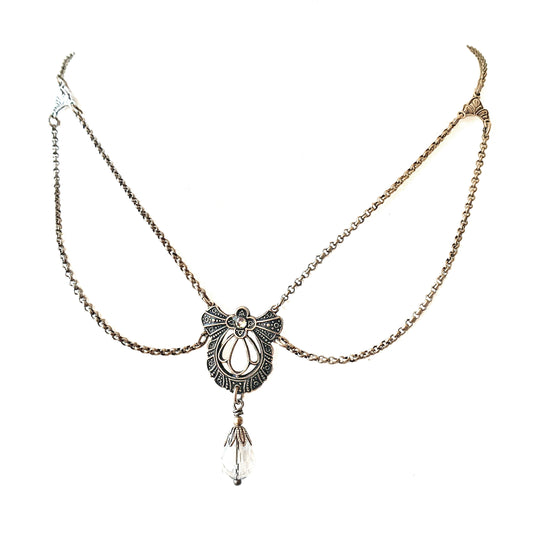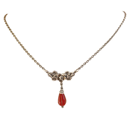 Collar Corto Victoriano con Flor y Gota de Vidrio Checo