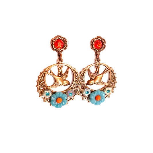 Swallow in Her Garden Turquoise Earrings - LAST CHANCE -