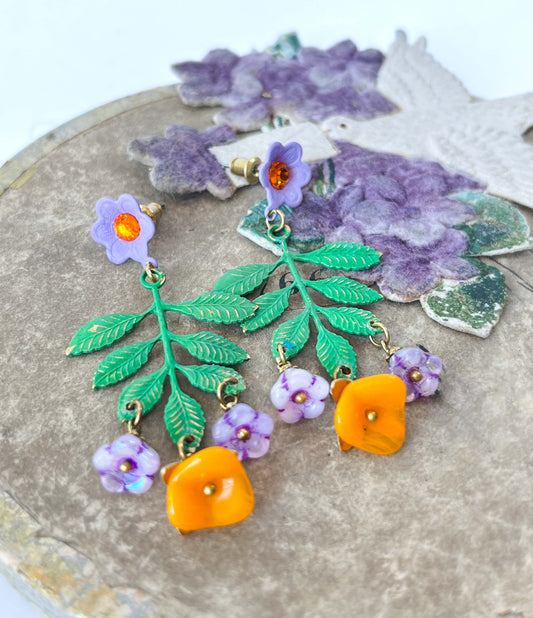 Papillon Rouge – Enameled Butterfly and Flower Earrings