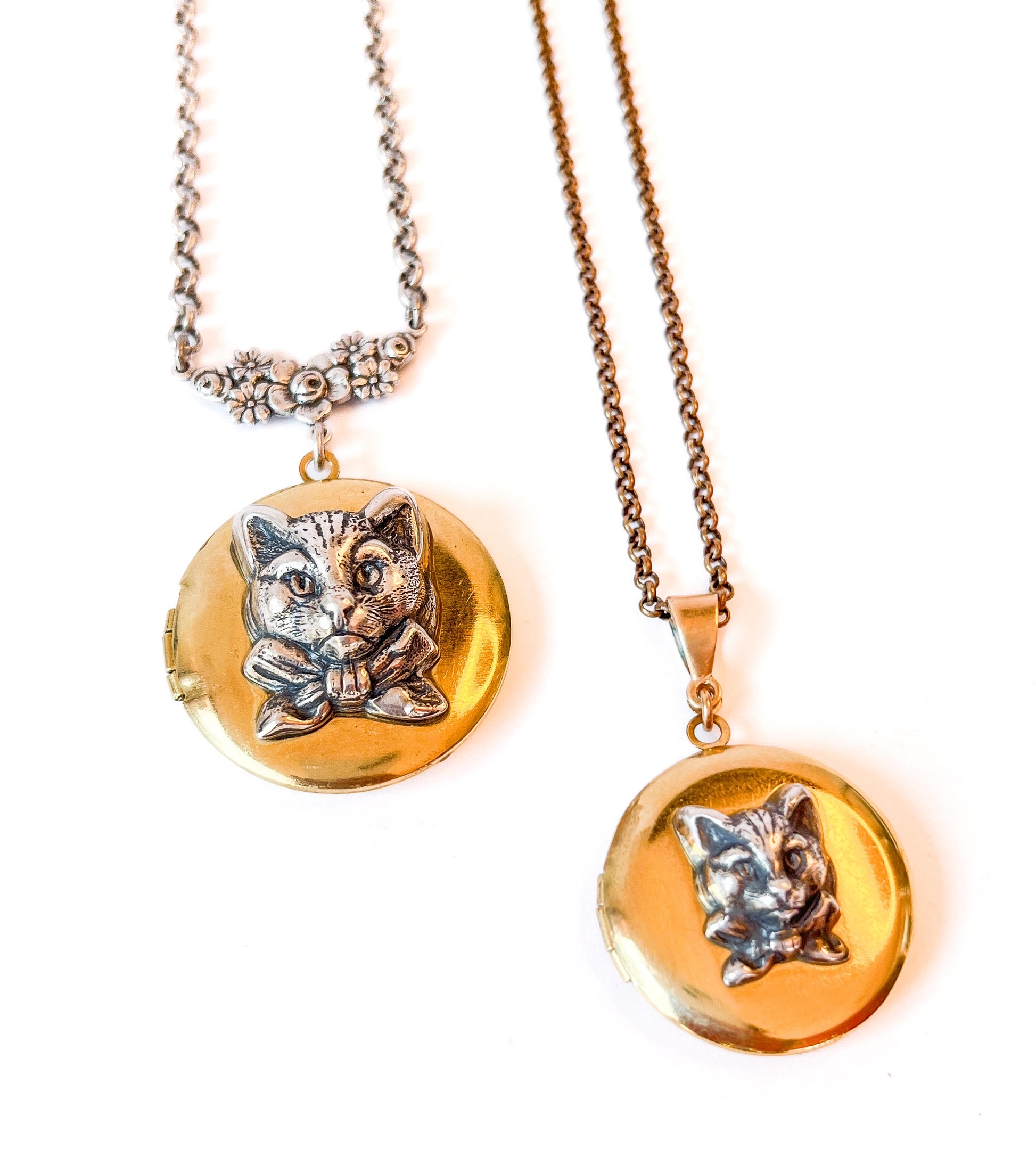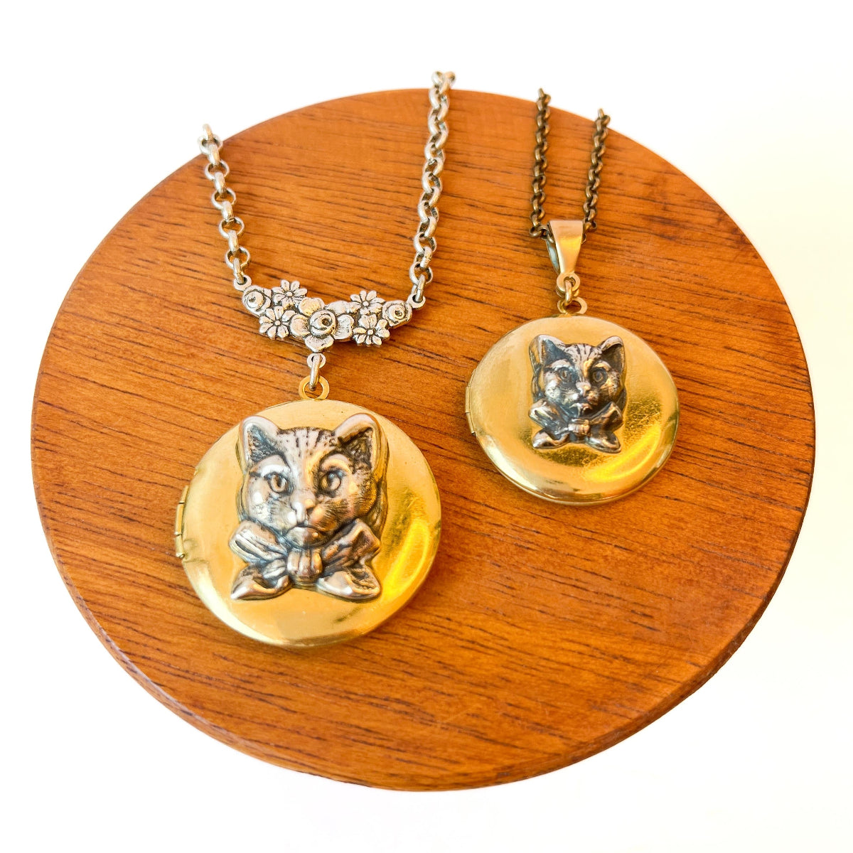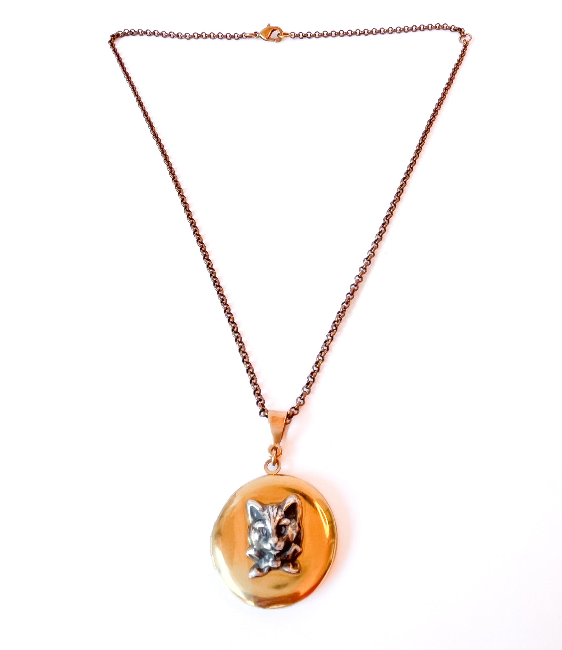 Este relicario de bronce con gatito forma parte de una edición especial de 2 piezas únicas: