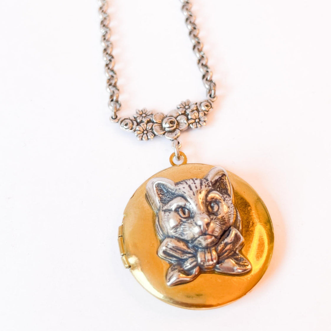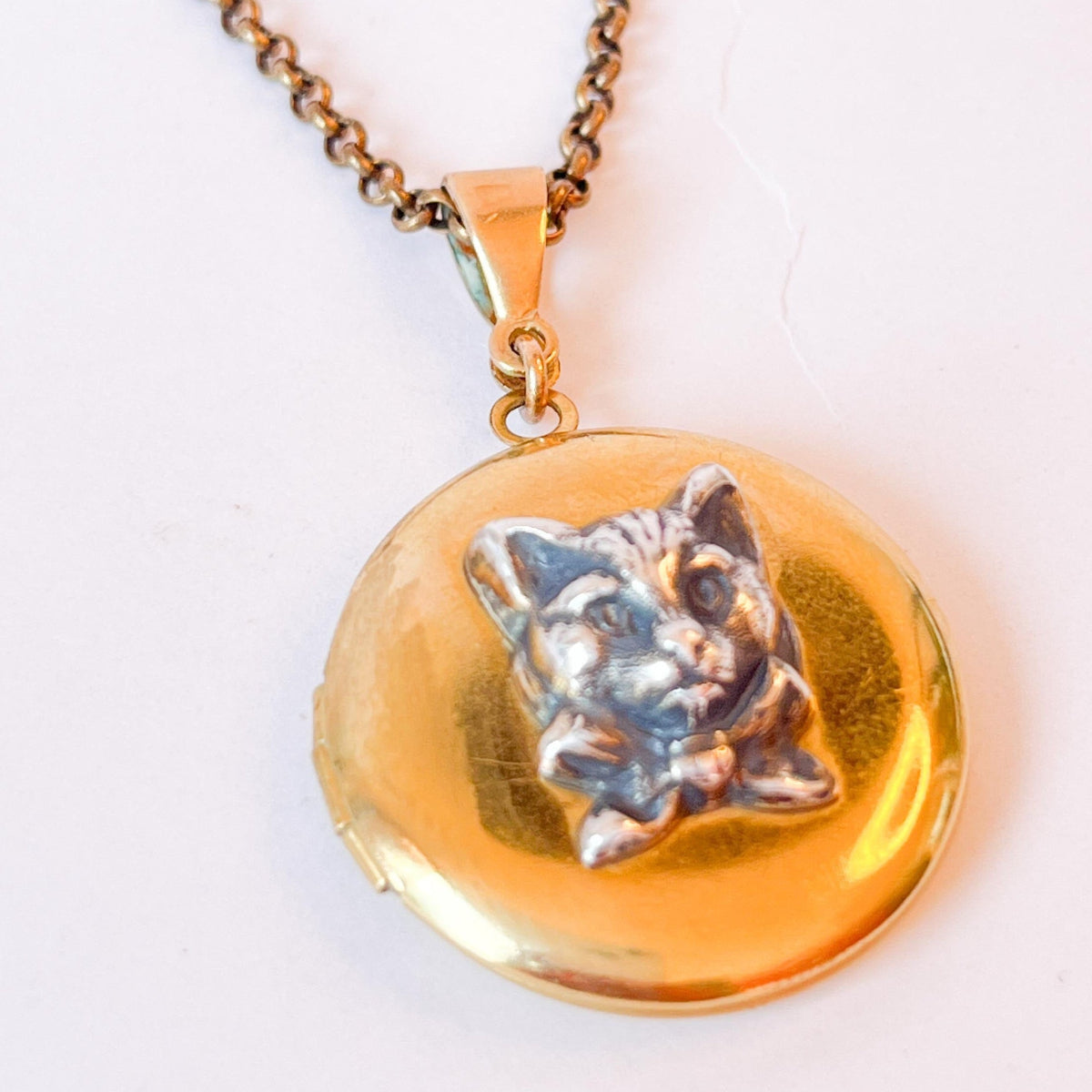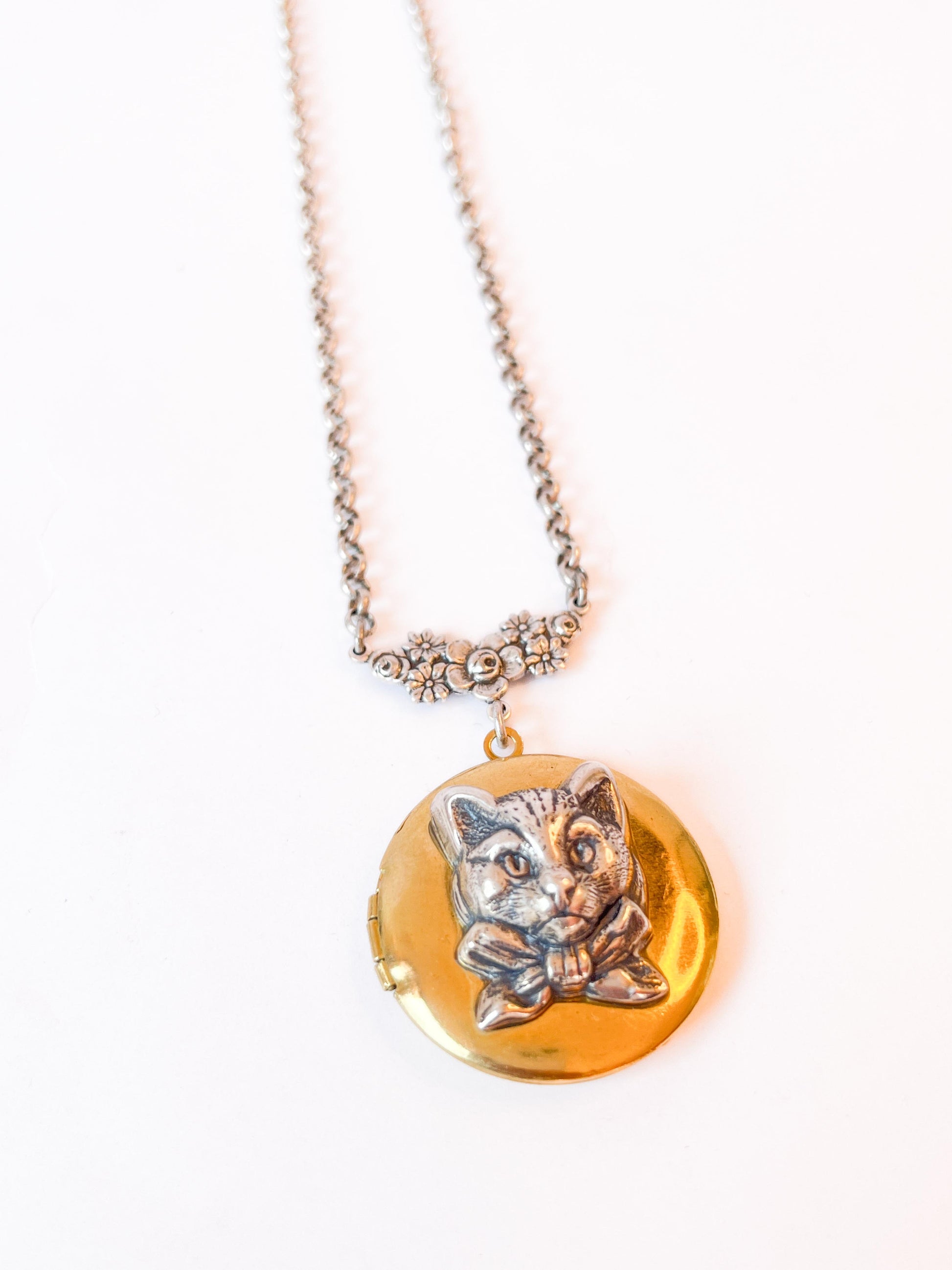 Este relicario de bronce con gatito forma parte de una edición especial de 2 piezas únicas: