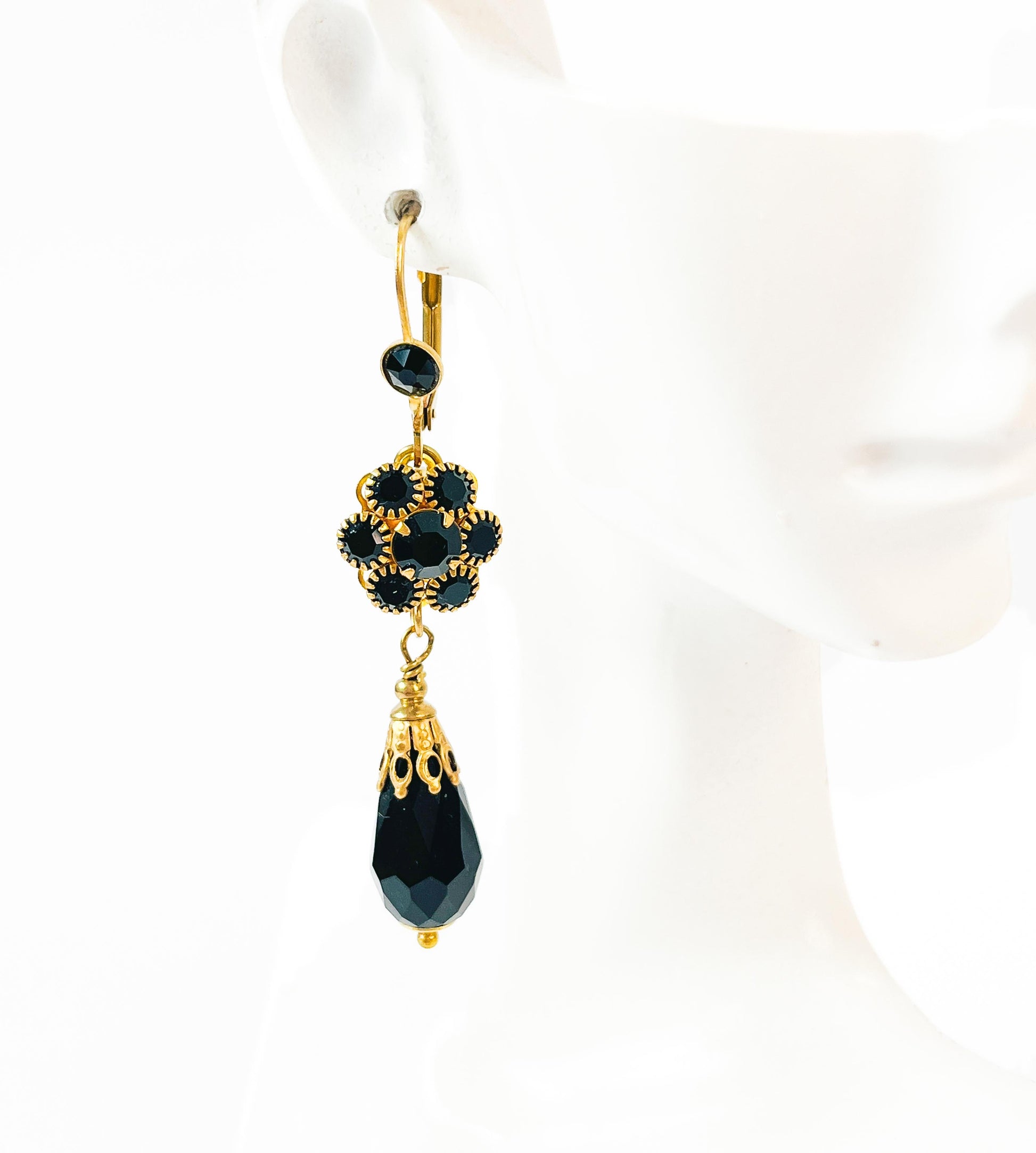 Materiales: Flor Vintage de Cristes de Swarovski, gota de vidrio gacetado, gancho de laón con Cristal, todo libre de níquel.